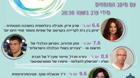 שבוע פתיחה חגיגי עם מיטב המומחים מתחומים שונים מידי ערב בשעה 20:30