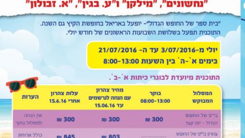 התוכנית תפעל בשלושת השבועות הראשונים של חודש יולי מ-3/07/2016 עד ה- 21/07/2016