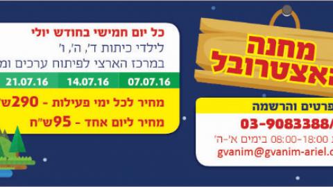 כל יום חמישי בחודש יולי לילדי כיתות ד', ה', ו' במרכז הארצי לפיתוח מנהיגות