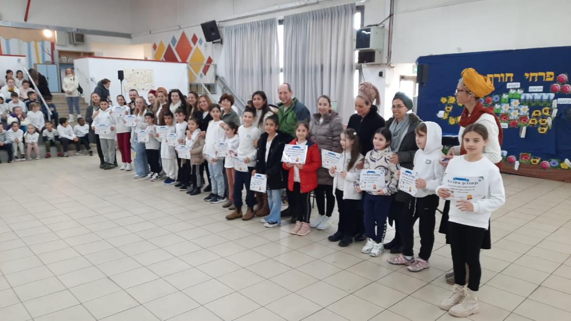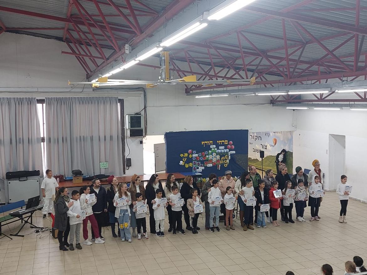 התלמידים והצוות התכנסו באולם הספורט, ציינו את הילדים שהצטיינו במהלך הסמסטר במגוון תחומים לא רק לימודיים, אלא גם חברתיים ונהנו ממופע מקפיץ של להקת בית הספר.