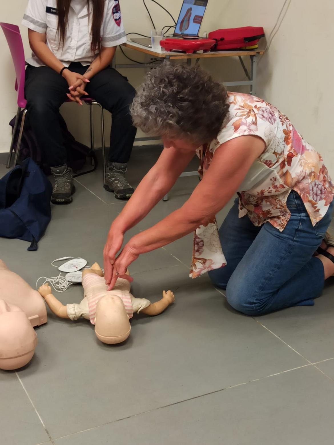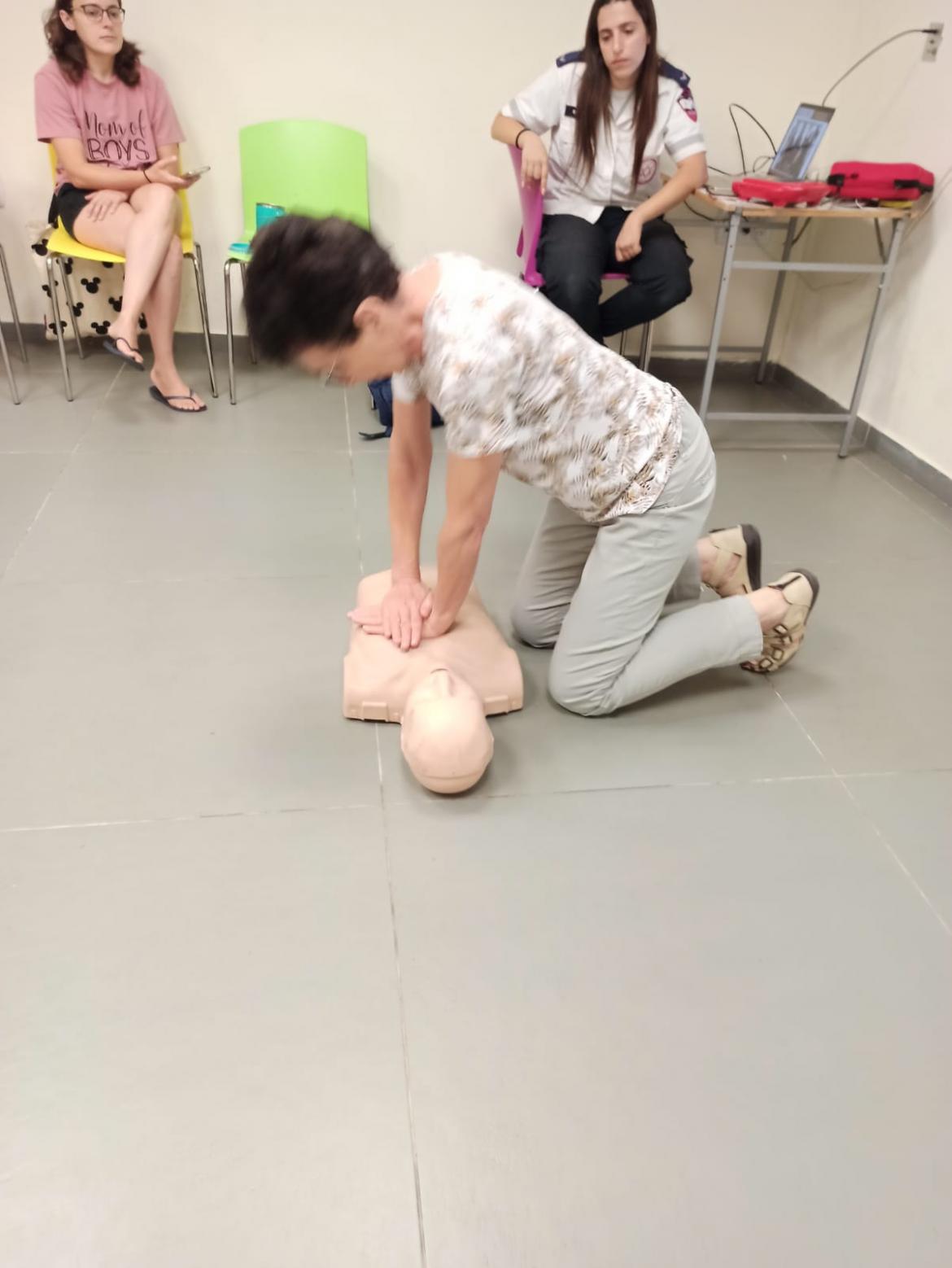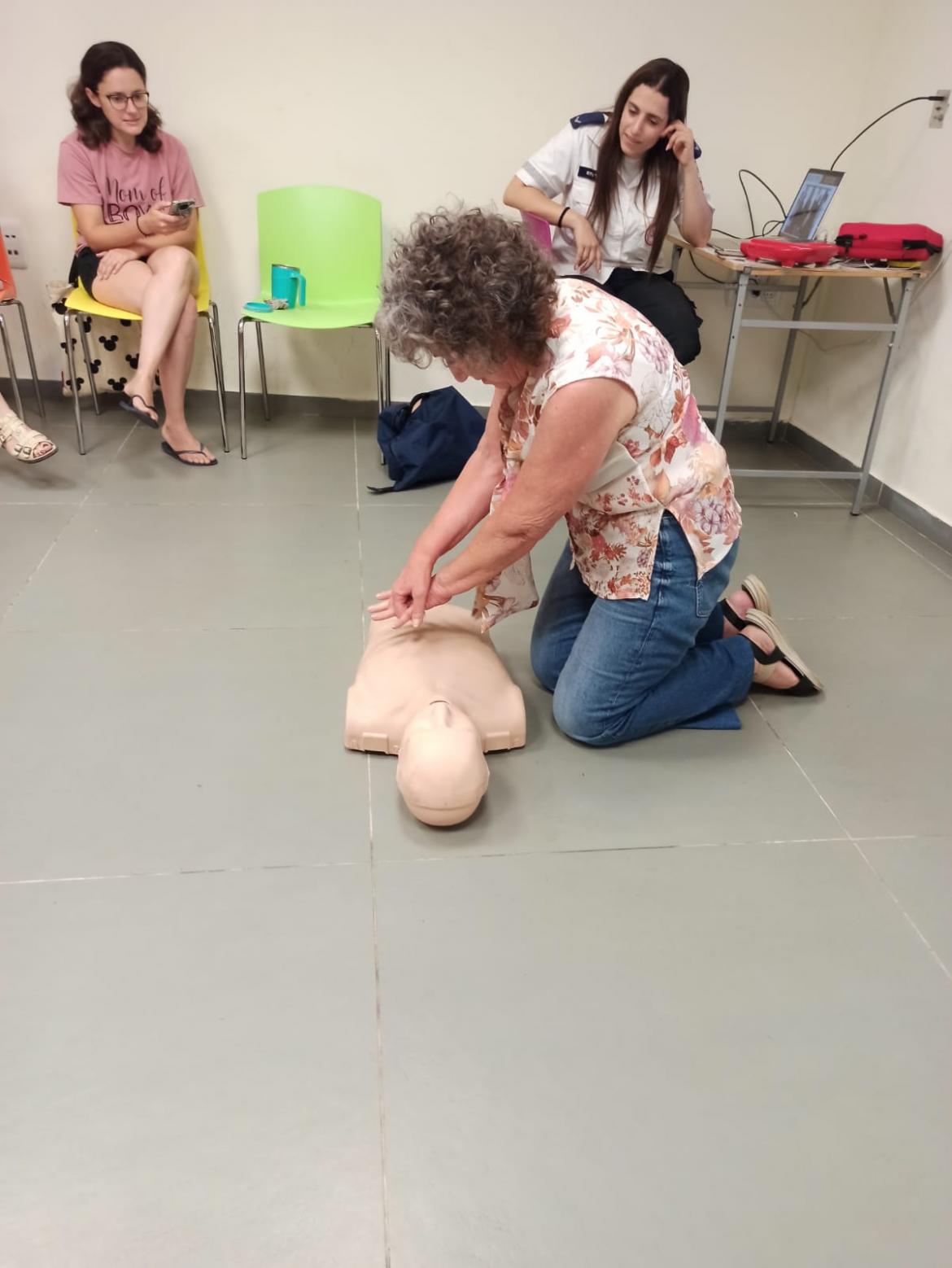בסבב הראשון השתתפו כ-15 תושבים שבאו, למדו והתנסו על בובות תרגול בהחייאה של מבוגרים, ילדים ותינוקות.
