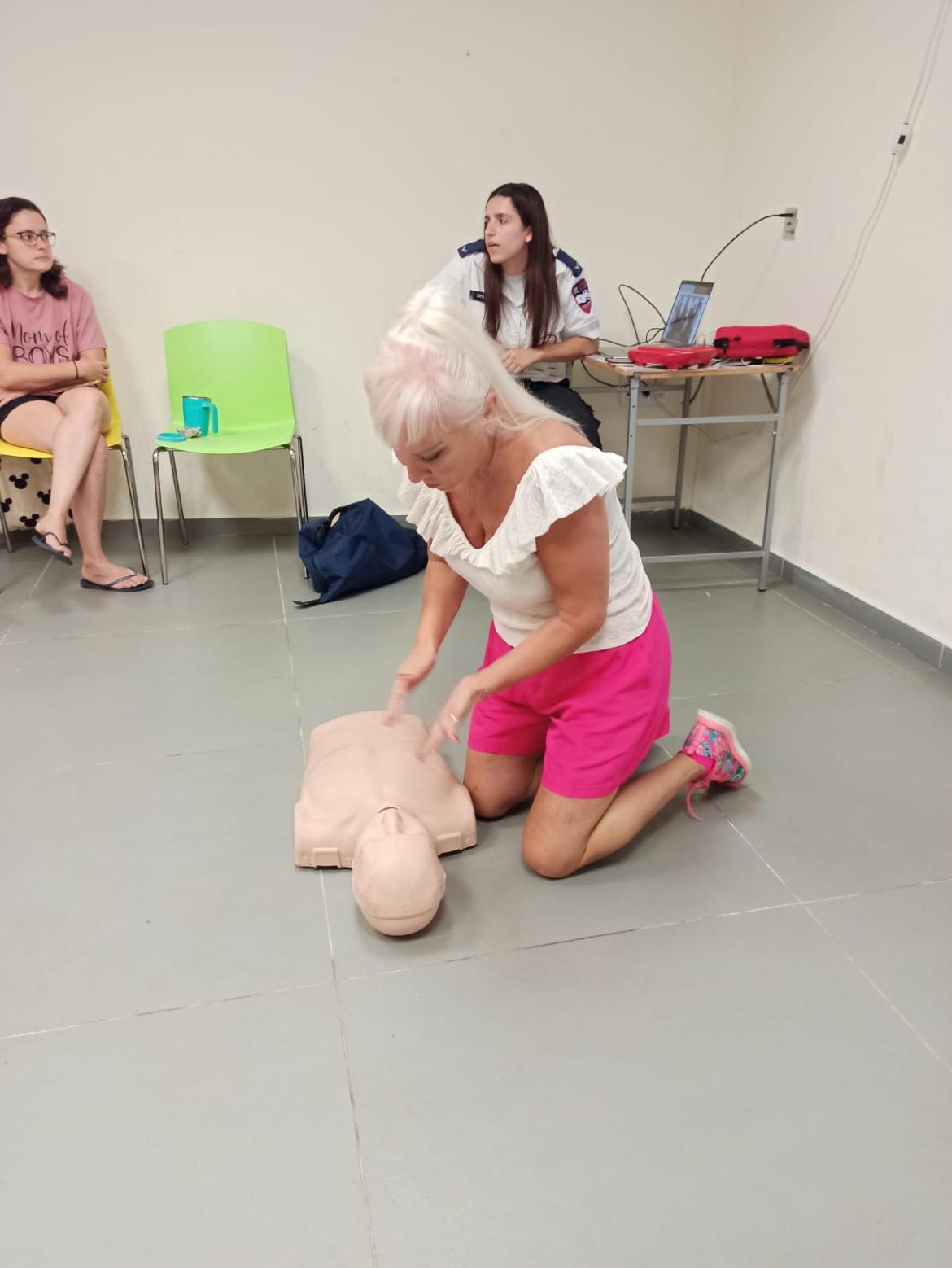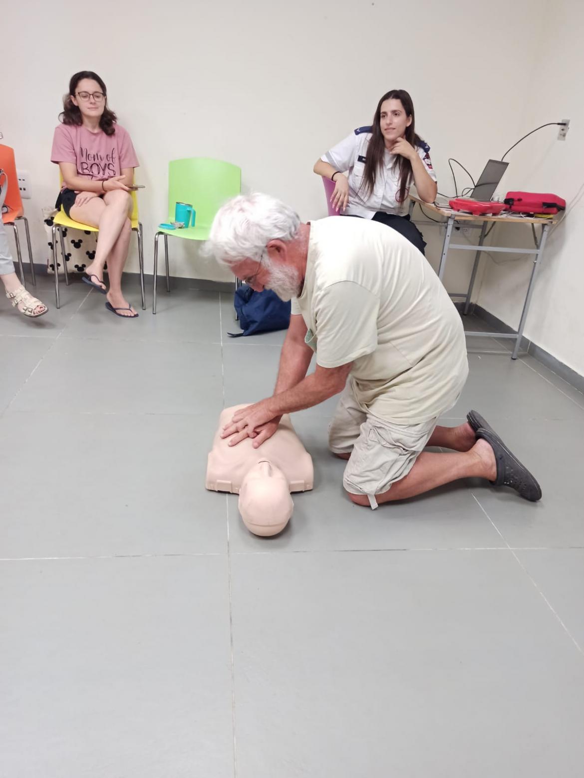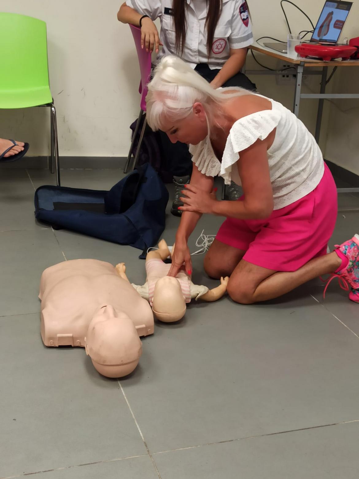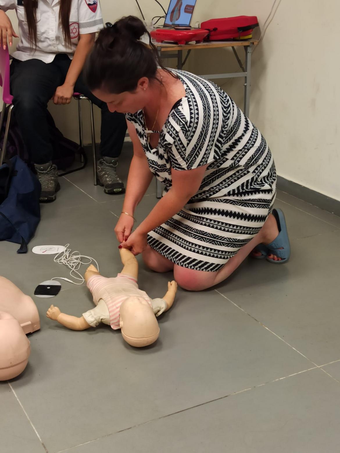 בסבב הראשון השתתפו כ-15 תושבים שבאו, למדו והתנסו על בובות תרגול בהחייאה של מבוגרים, ילדים ותינוקות.