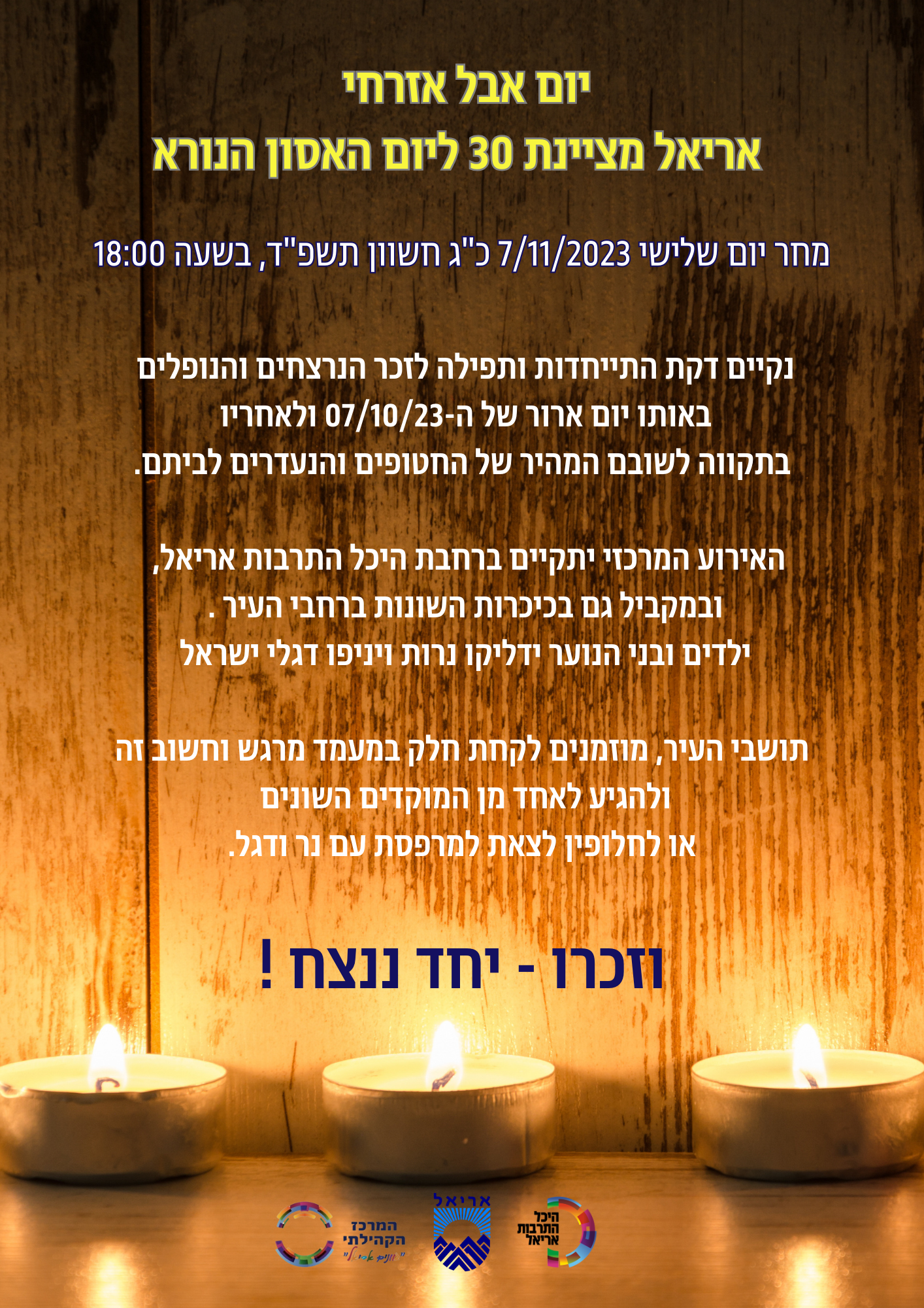 יום אבל אזרחי - אריאל מציינת 30 ליום האסון הנורא
